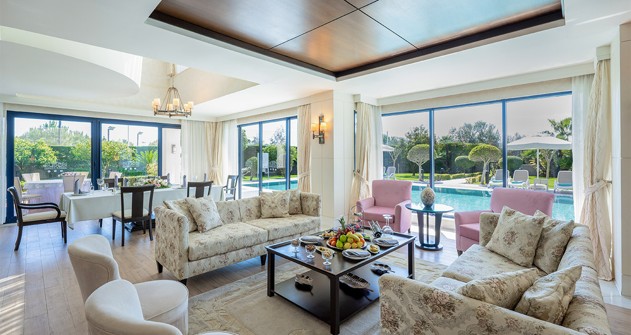 Müstakil bahçe ve özel havuzlarıyla öne çıkan Susesi VIP Villalar, otel alanı içinde sakin bir noktada konumlanıyor. Zeytin, limon, kamkat ağaçlarının içerisinde ve kuş cıvıltılarıyla lüks bir yaşam alanı sunuyor